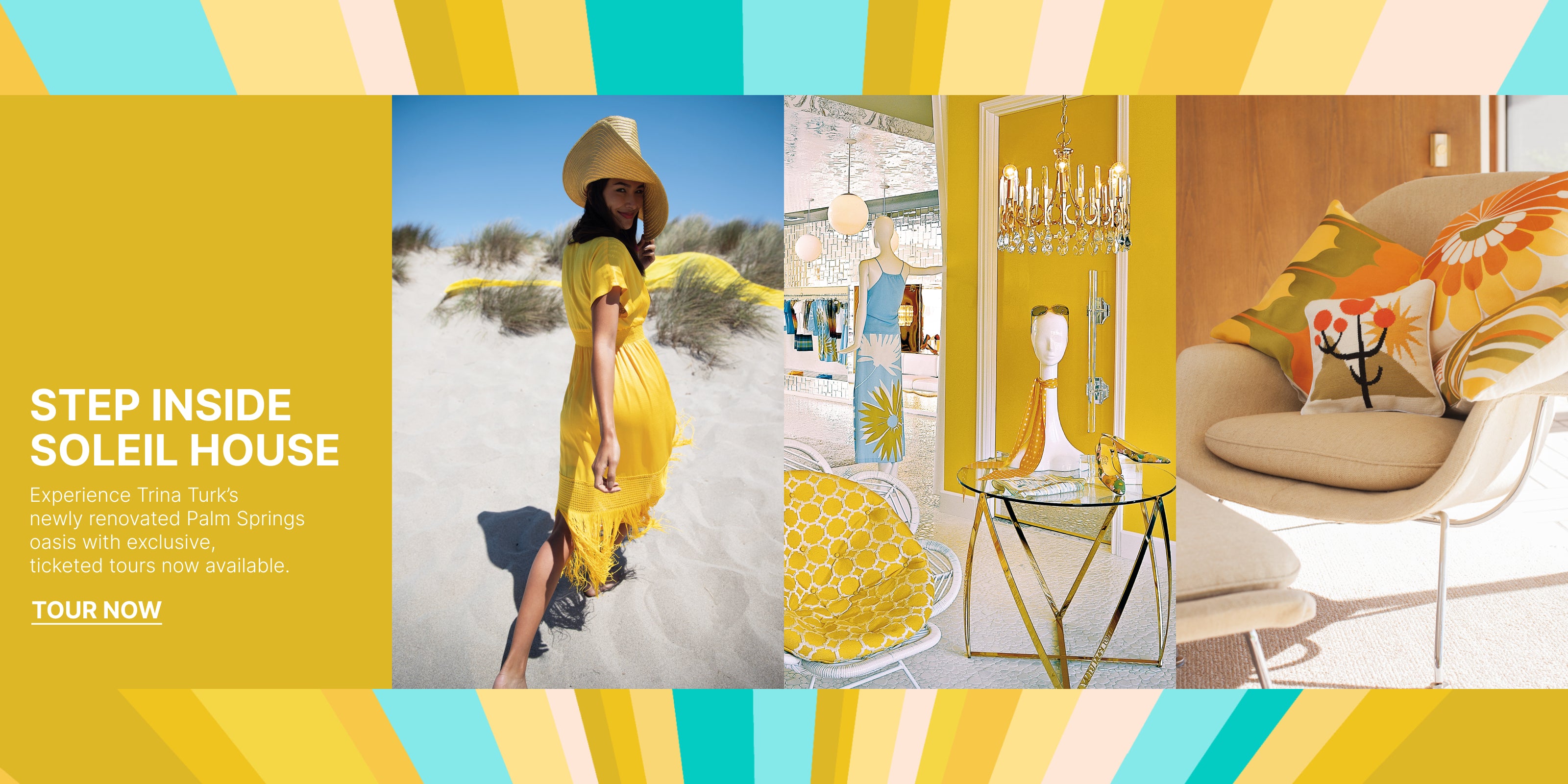 The Trina Turk collection is inspired by California's multicultural mix, creativity, and sunny spirit, creating bold and bright designs that exude optimism in signature prints and vivid color.