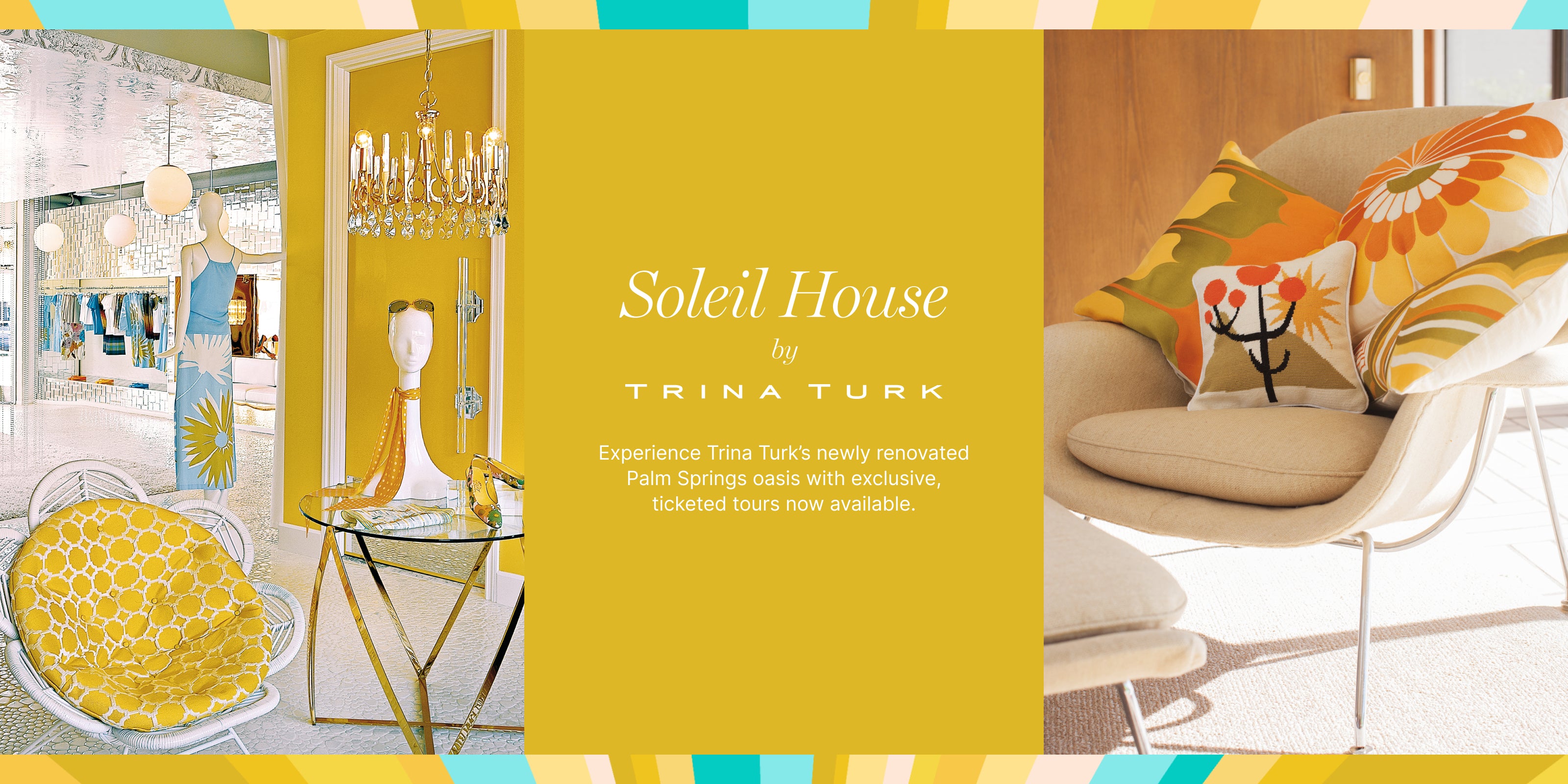 The Trina Turk collection is inspired by California's multicultural mix, creativity, and sunny spirit, creating bold and bright designs that exude optimism in signature prints and vivid color.