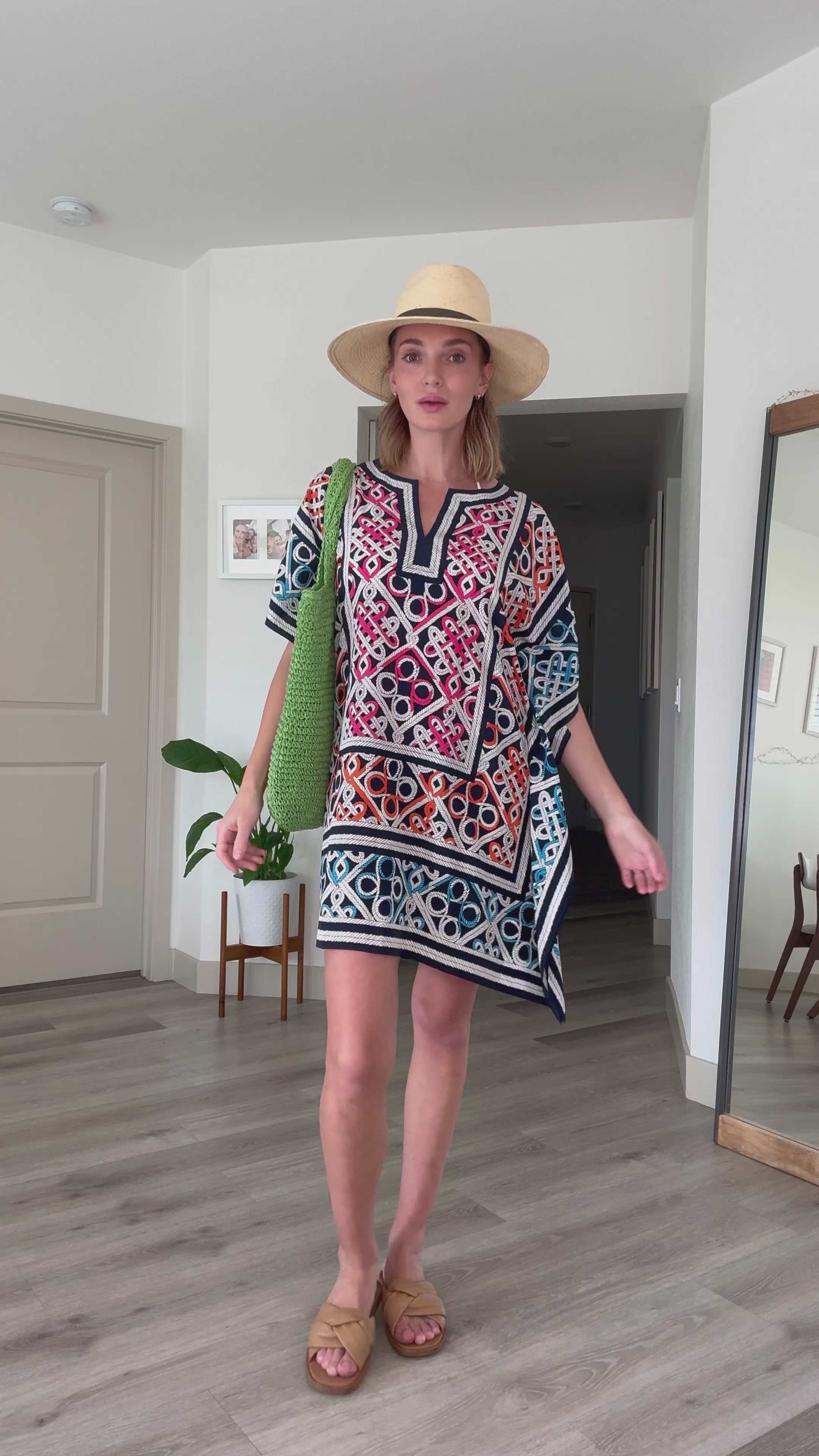 Our top-rated Theodora caftan dress is back in a bold new print. In luxurious Silk Crepe de Chine, this short, patterned caftan dress is ideal for a romantic dinner under the stars or as a chic swim cover-up for poolside cocktails on your next holiday in the sun.